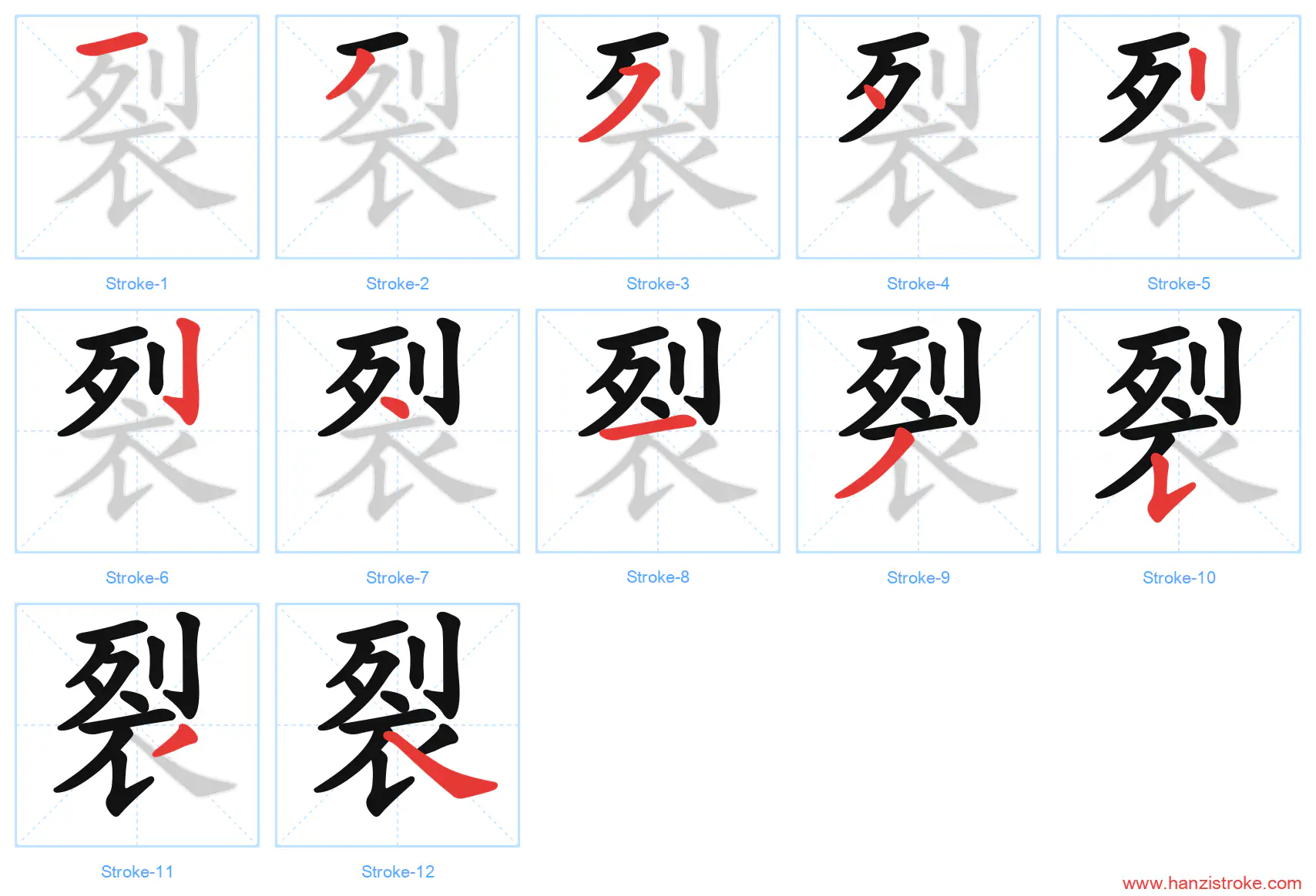 Free Printable Handwriting Practice with Stroke Order: 裂