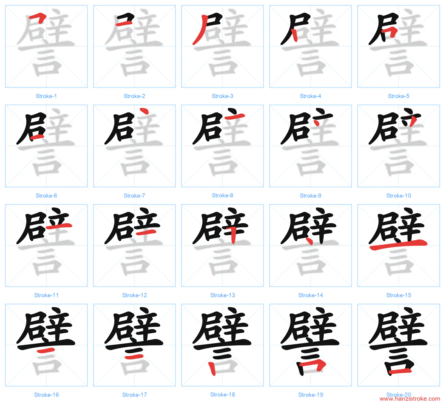 Free Printable Handwriting Practice with Stroke Order: 譬
