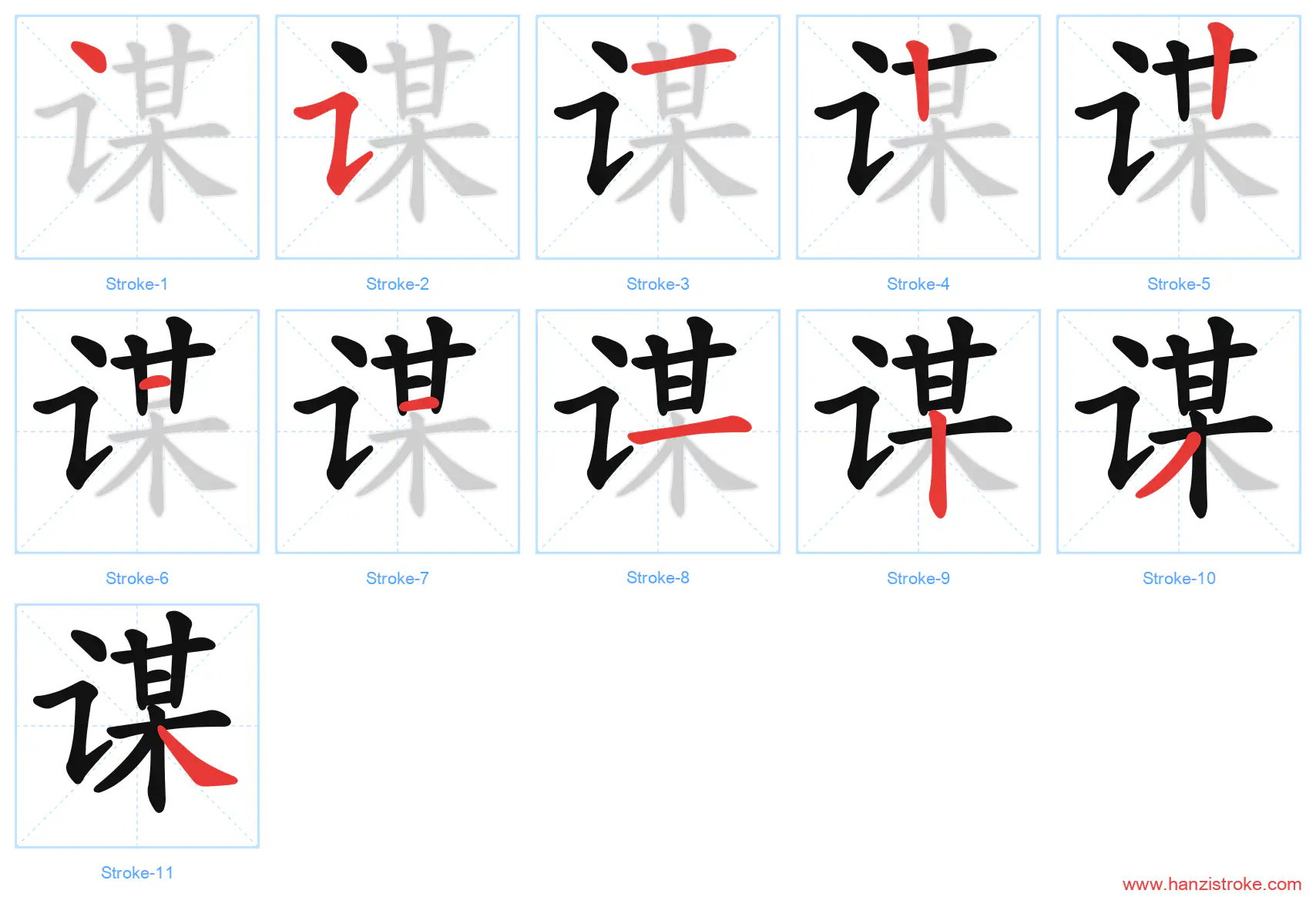 Free Printable Handwriting Practice with Stroke Order: 谋