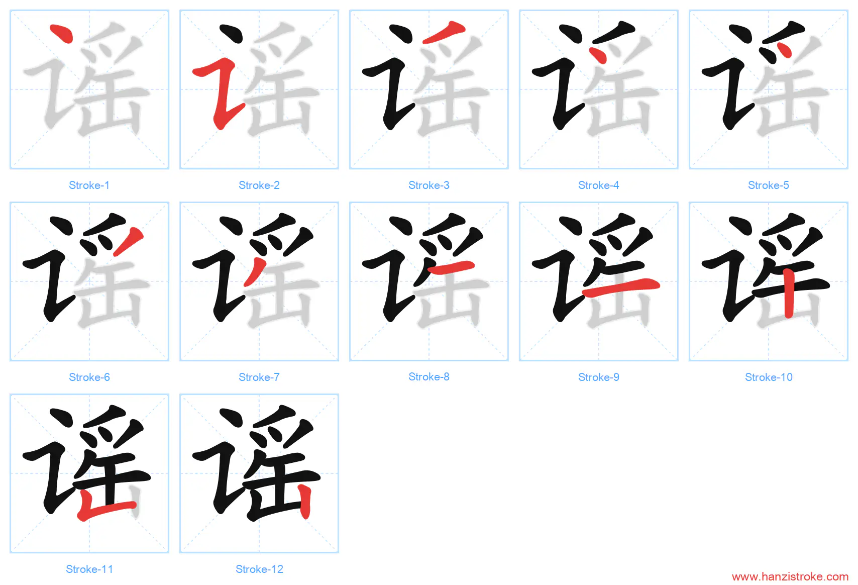 Free Printable Handwriting Practice with Stroke Order: 谣