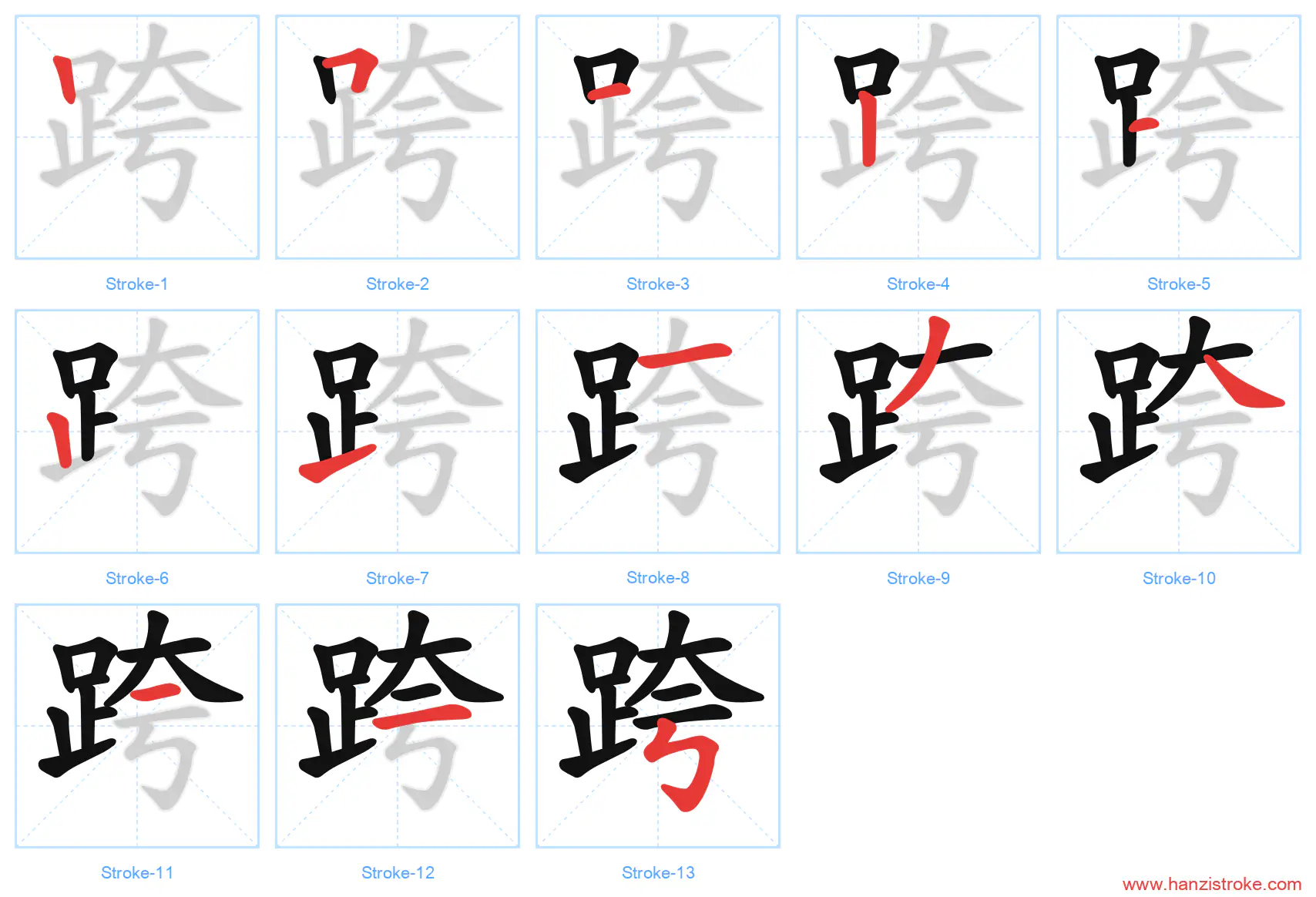 Free Printable Handwriting Practice with Stroke Order: 跨