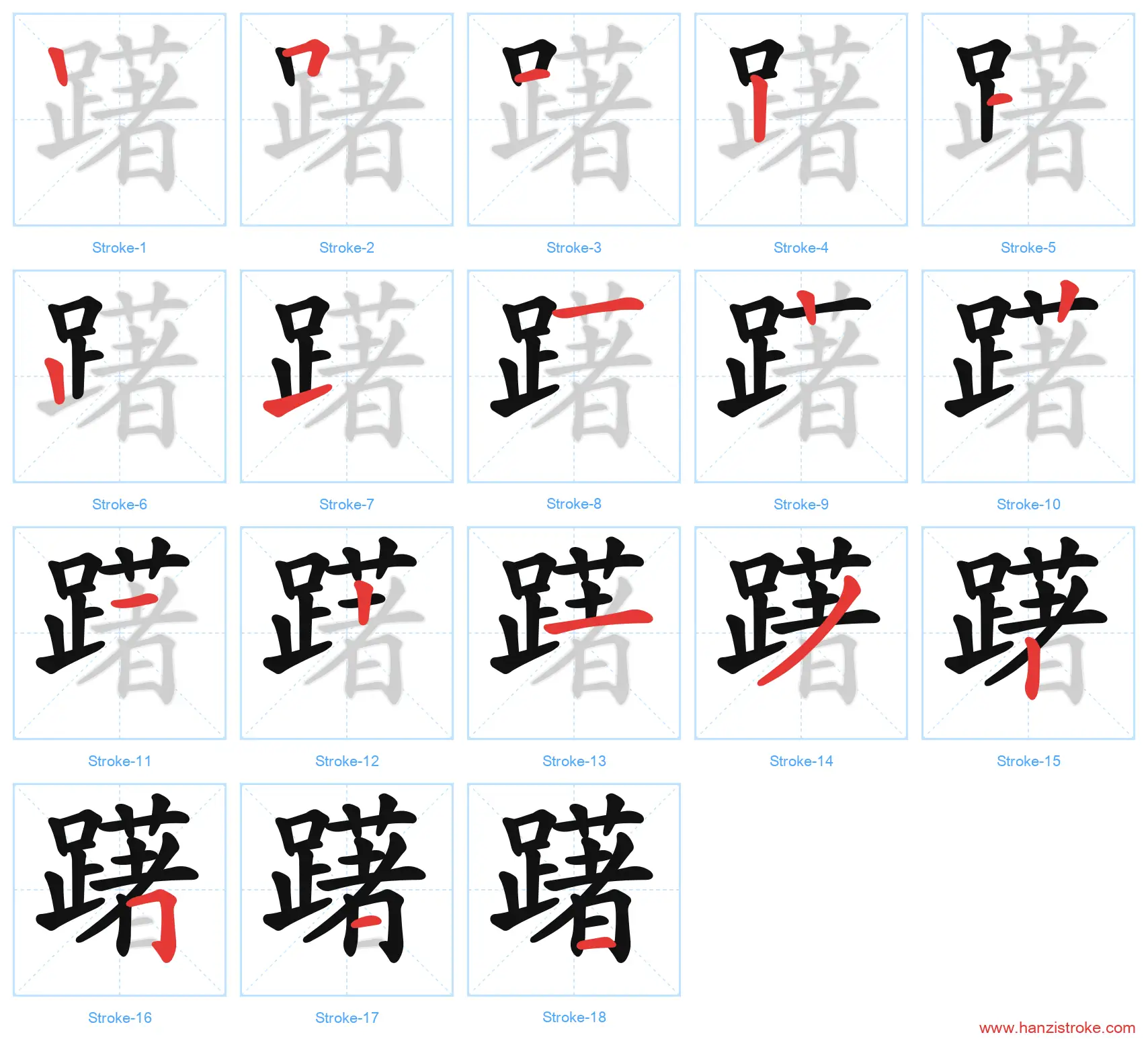 Free Printable Handwriting Practice with Stroke Order: 躇