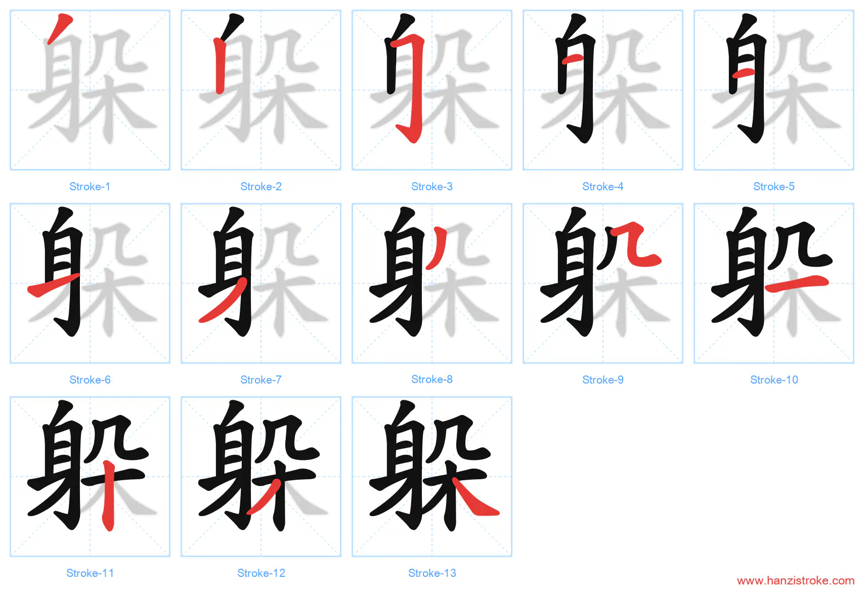 Free Printable Handwriting Practice with Stroke Order: 躲