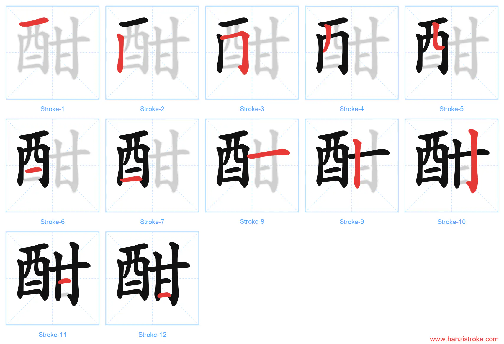 Free Printable Handwriting Practice with Stroke Order: 酣