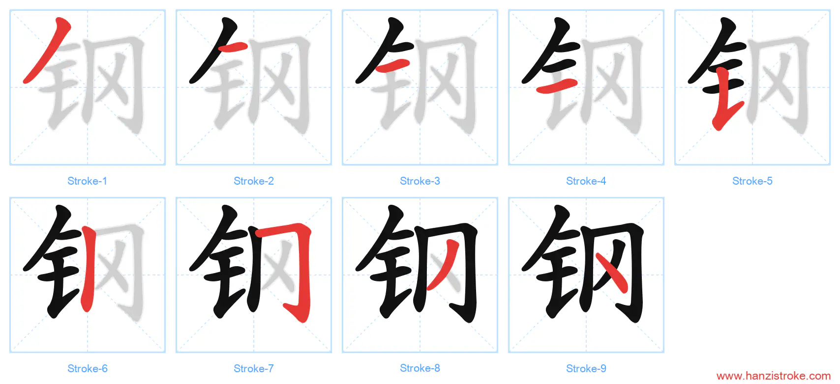 Free Printable Handwriting Practice with Stroke Order: 钢