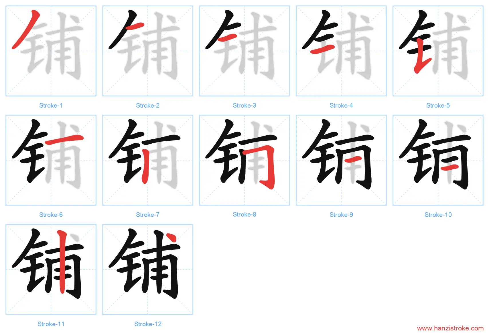 Free Printable Handwriting Practice with Stroke Order: 铺