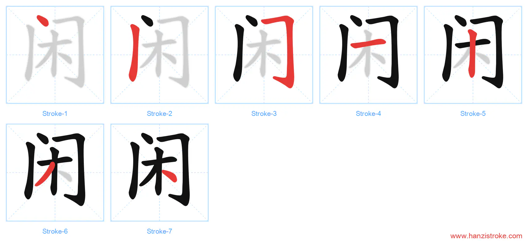 Free Printable Handwriting Practice with Stroke Order: 闲