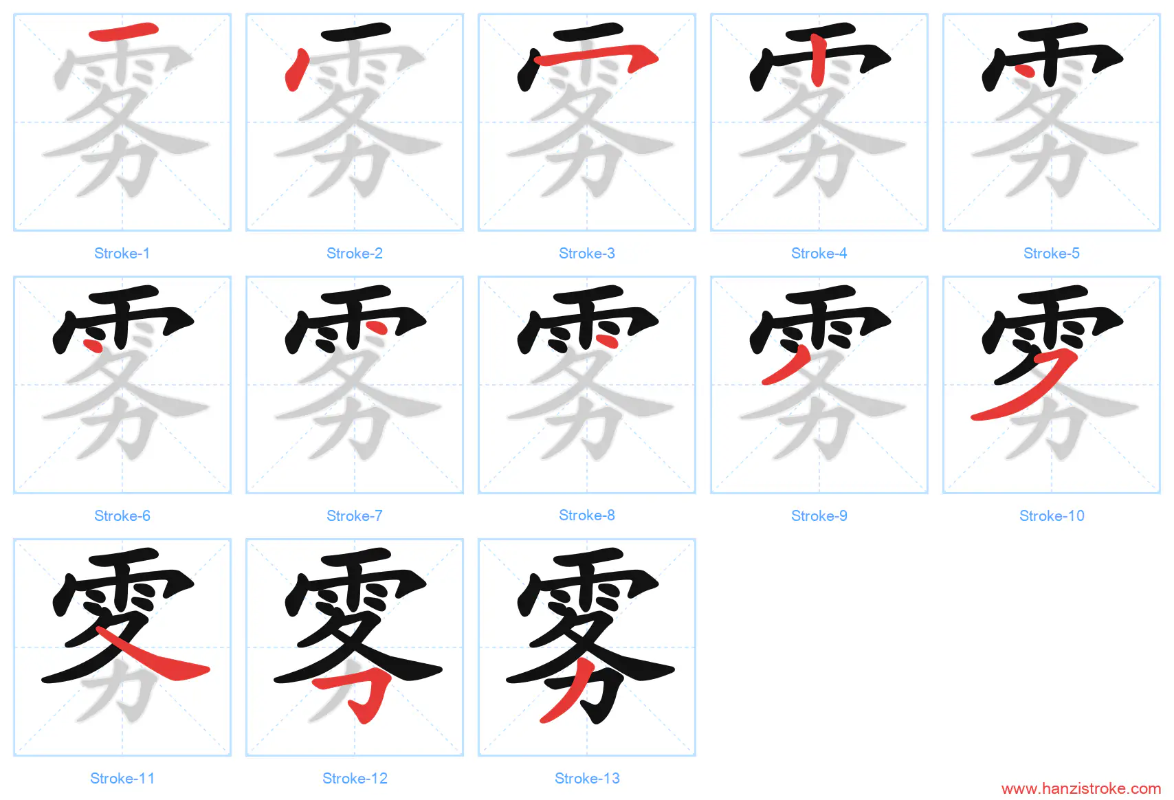 Free Printable Handwriting Practice with Stroke Order: 雾