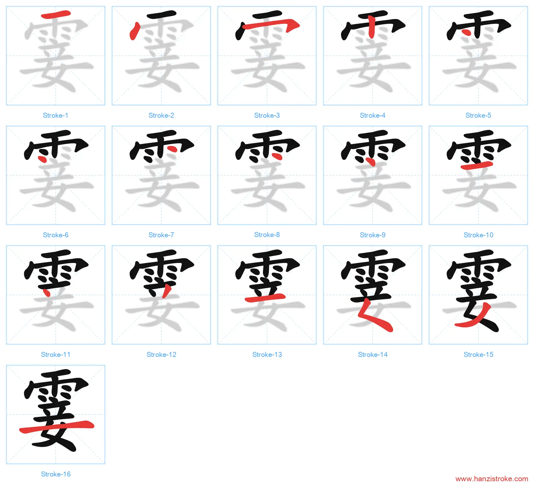 霎 (shà): Light rain — Stroke Order & Writing Guide