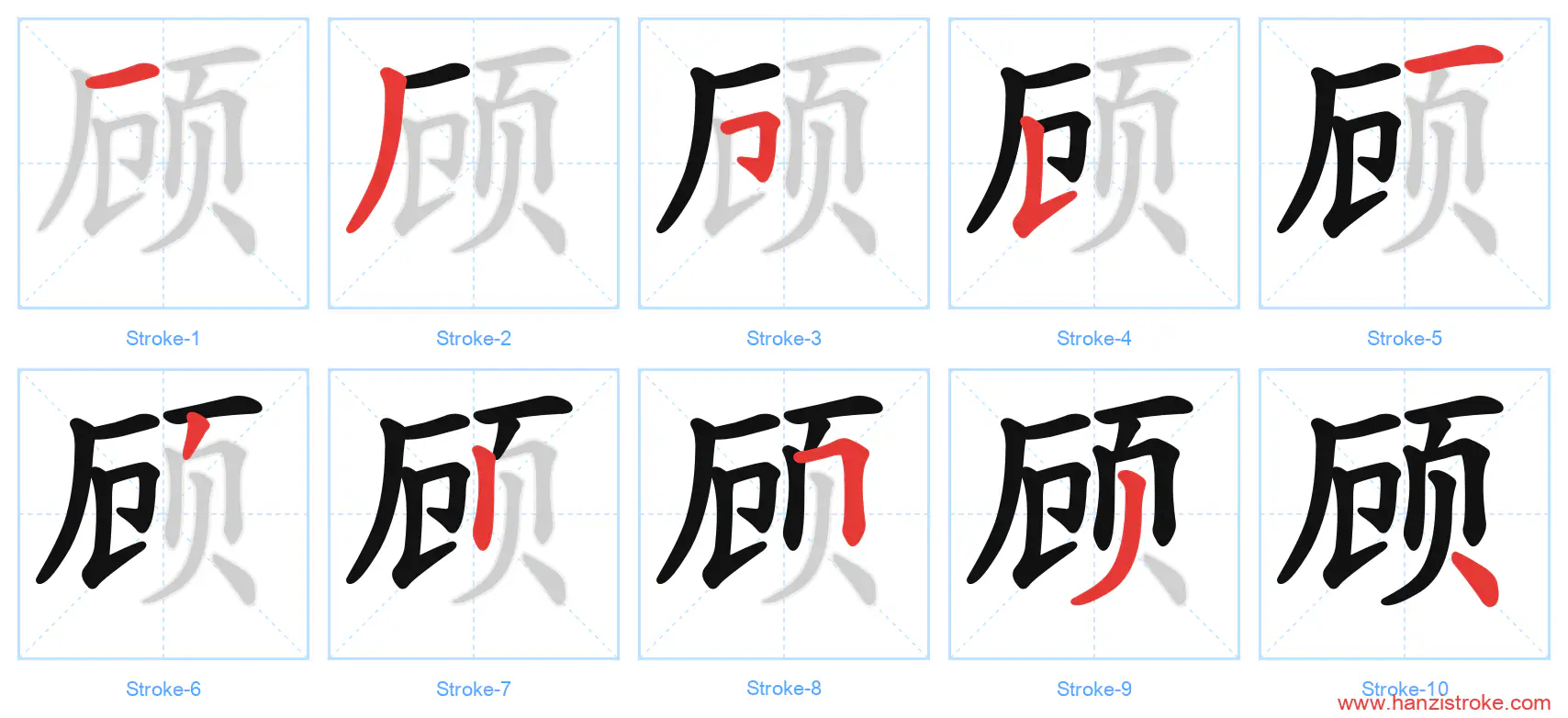 Free Printable Handwriting Practice with Stroke Order: 顾