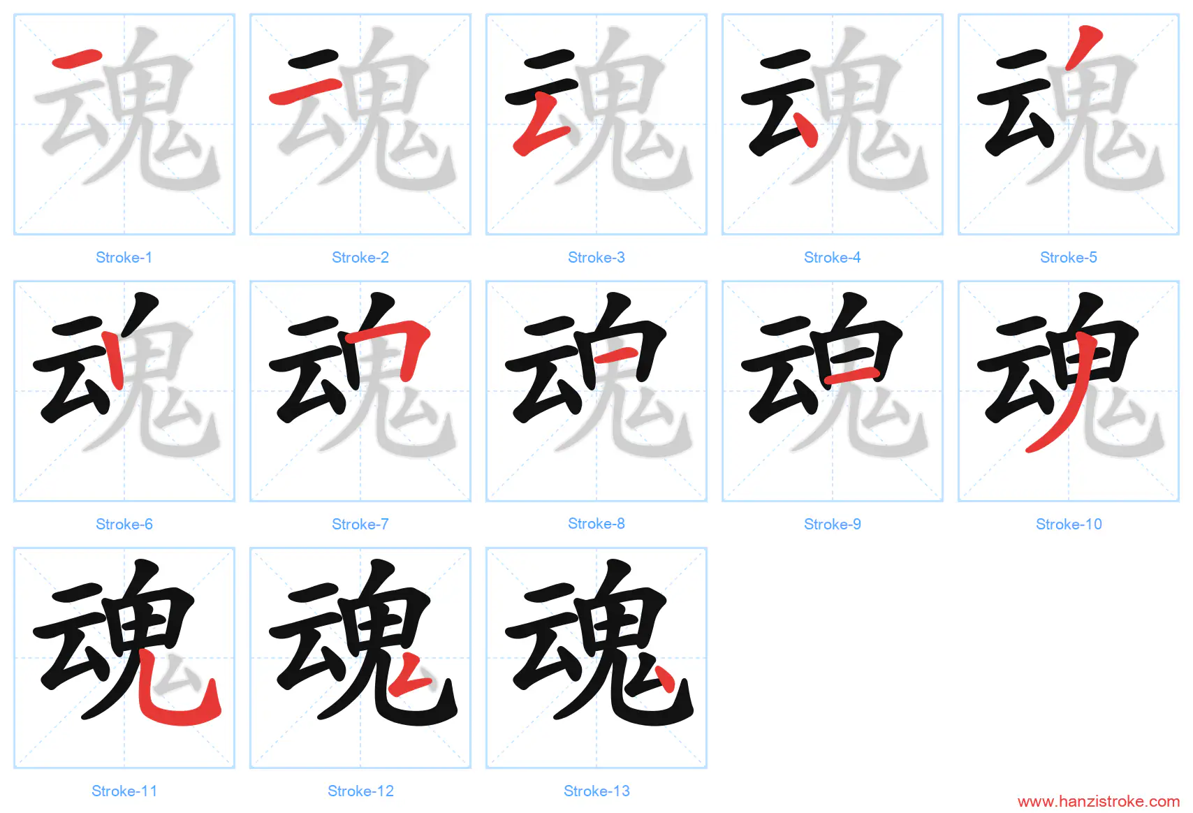 Free Printable Handwriting Practice with Stroke Order: 魂