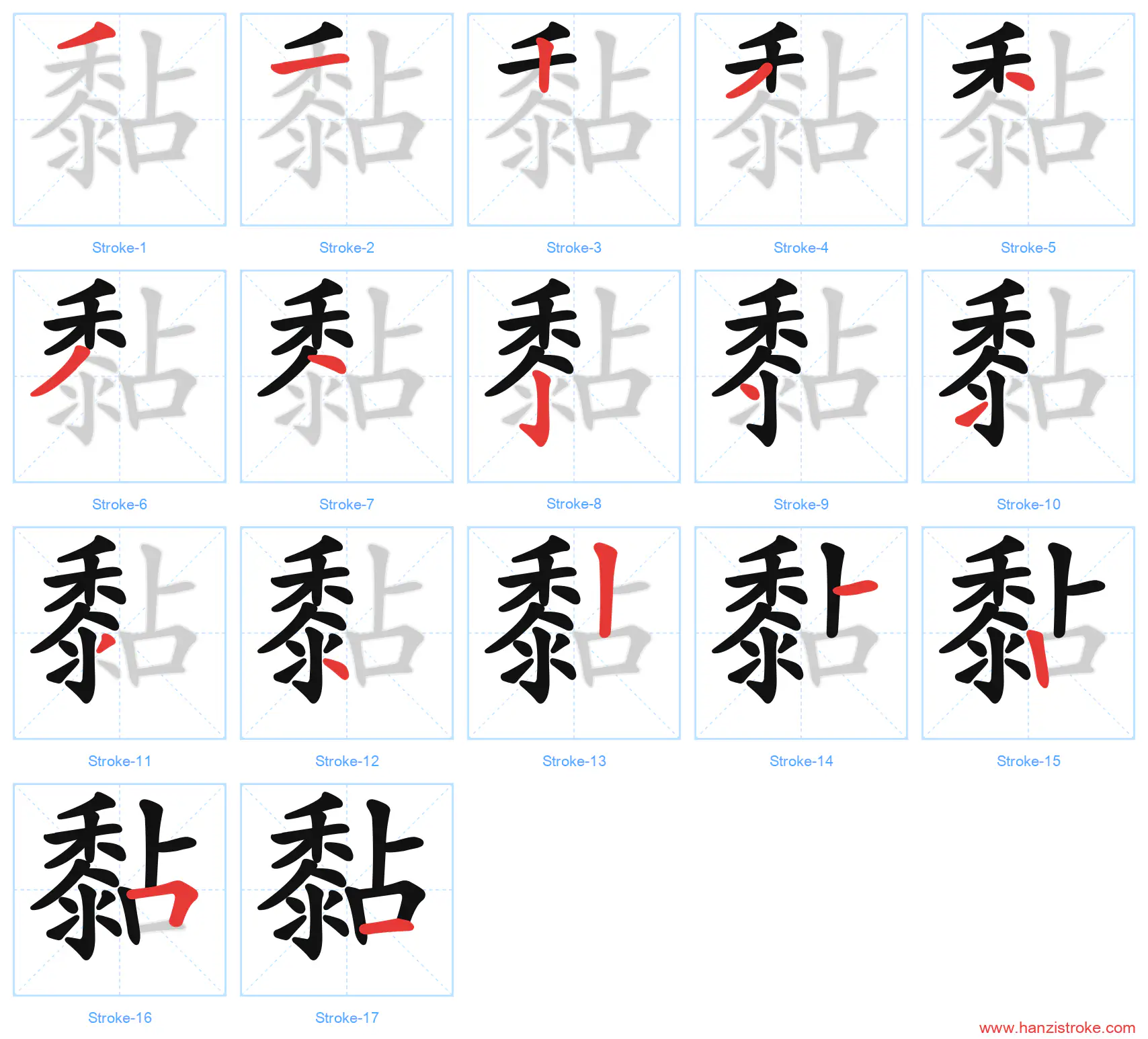 Free Printable Handwriting Practice with Stroke Order: 黏